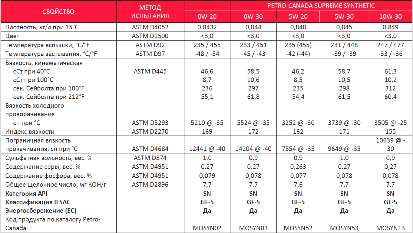 Масло SUPREME SYNTHETIC 5W30 и 0W-20 также полностью отвечает требованиям спецификации