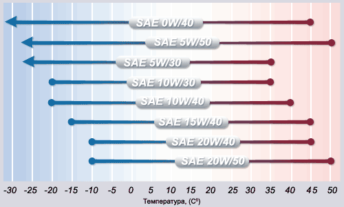 По спецификации SAE J300 вязкости масел определяются при условиях, близких к реальным. Таким образом, степень вязкости SAE помогает определить диапазон температуры окружающей среды, при котором масло обеспечит нормальную работу двигателя: проворачивание масла стартером, прокачивание его насосом по смазочной системе при холодном пуске и надежное смазывание летом при длительной работе в режиме максимальных скоростей и нагрузок.