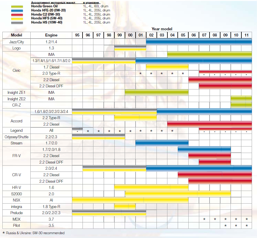 Рекомендации выбора моторного масла для России и Украины от Honda Russia.