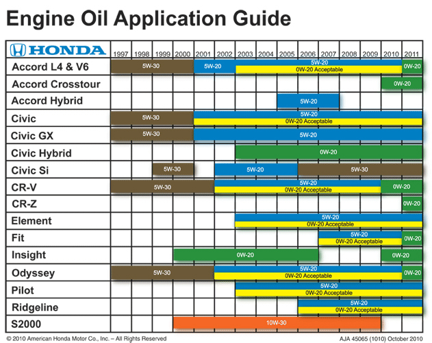 • Большинство двигателей Honda и Acura разработанные в последние несколько лет, были разработаны для применения вязкости 0W20;