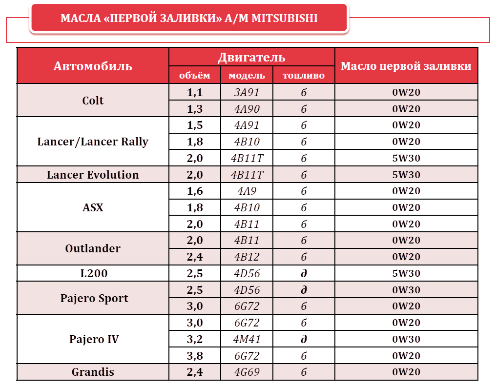 • оригинальные масла – масла производимые специально для применения в агрегатах а/м Mitsubishi Motors;